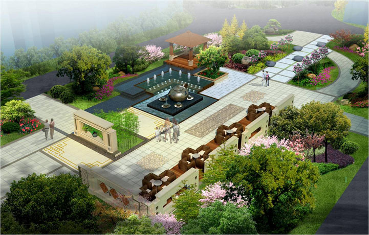 小區(qū)中心景觀設(shè)置五個(gè)路口保證中心景觀區(qū)的通達(dá)性,每個(gè)路口分別以設(shè)計(jì)浮雕樣式引入。